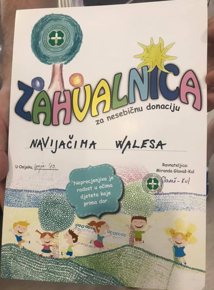 Diwrnod cyn gêm Croatia a Chymru, aeth cynrychiolwyr Gôl i ymweld â chartref plant yn Osijek gyda rhodd o werth £400 o docynnau Decathlon.
