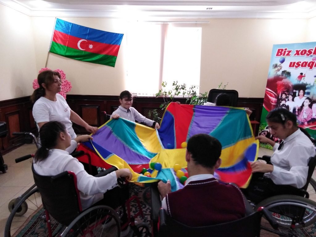 Diwrnod cyn gêm Cymru yn erbyn Azerbaijan yn Baku, bu cynrychiolwyr Gôl yn brysur yn ymweld â dwy ganolfan blant yn y ddinas. Yn gyntaf, aethon ni i Ganolfan Wasanaeth Gyhoeddus #Rh2 yn Saray sef cartref preswyl i dros 160 o blant gyda anghenion arbennig. Cawson wledd o gerddoriaeth a dawns a chlywon am y ddarpariaeth unigol a grŵp, sesiynau therapi’r synhwyrau a’r ffocws ar ddatblygu sgiliau byw’n annibynnol. Rhoddod Gôl gadeiriau arbennig fel bod y plant gyda pharlys yr ymennydd yn gallu cymryd rhan mewn gweithgareddau.